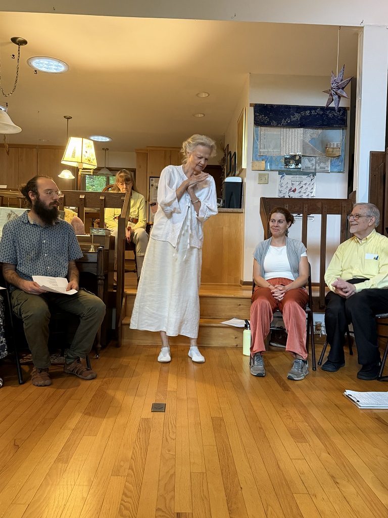 Christina Beck gave Rudolf Steiner’s indications about the verse, the eurythmy form and gestures, and their meaning. Christina led the group in several eurythmy exercises.